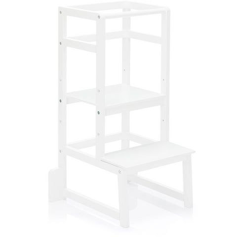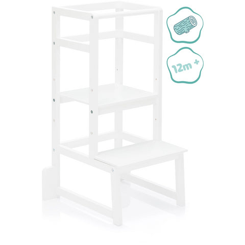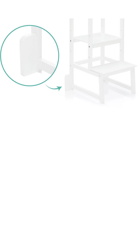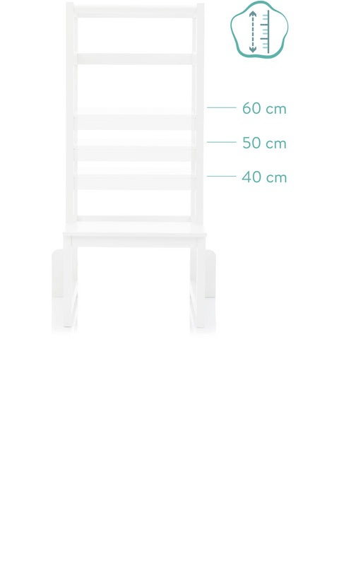 Micuta ta este deja foarte curioasa si vrea sa ajute sau sa caute peste tot? Atunci turnul de invatare Fillikid este ideal. Intrucat cei mici cresc rapid, inaltimea suportului poate fi ajustata perfect la marimea actuala a copilului. Nu numai ca este frumos la privit si se potriveste perfect in orice mediu de locuit prin designul sau modern, dar simplu, dar este si extrem de stabil si ofera o protectie excelenta impotriva rasturnarii prin suporturile laterale si constructia solida. Cand este folosit in bucatarie, copilul dumneavoastra poate observa fara efort procesele de gatit si, de asemenea, poate participa la distractia din bucatarie. Gatitul impreuna este simplificat cu Learningtower, deoarece aveti mainile libere. Si pentru ca micutii nostri cresc atat de repede, poti regla perfect inaltimea suportului cu 3 cai reglabile pe inaltime (40 / 50 / 60 cm) la inaltimea actuala a copilului. Odata stapanit drumul spre varf, bara rotunda serveste pentru a se tine si, bineinteles, ca protectie impotriva caderii. Turnul de catarare este potrivit de la varsta de 12 luni. Jocul si invatarea la nivelul ochilor cu parintii sau fratii mai mari il ajuta pe copil sa experimenteze interactiunile sociale foarte rapid si ii promoveaza abilitatile, de asemenea ajuta la intarirea legaturilor cu ceilalti. Turnul de invatare este realizat 100% din lemn de esenta tare european in UE. Desigur, se folosesc doar lacuri fabricate si certificate in Germania.